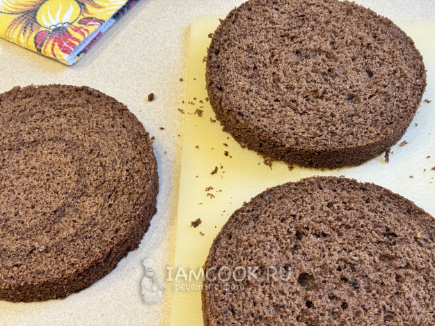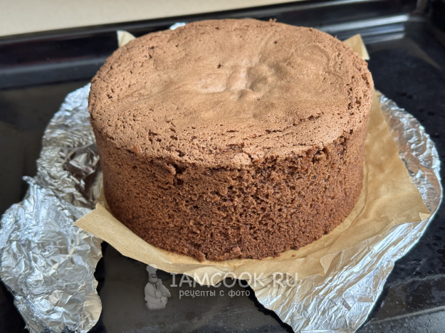 Выпекать бисквит при 180 градусах примерно 30-35 минут. Готовность проверить сухой зубочисткой. Готовый корж немного остудить в форме, а затем освободить от бортиков и полностью остудить.