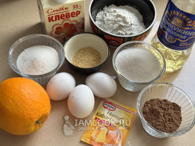Собрать продукты для приготовления апельсинового суфле для торта и самого торта.