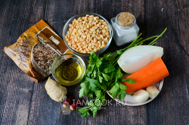 Соберите продукты для приготовления горохового супа Биссара.