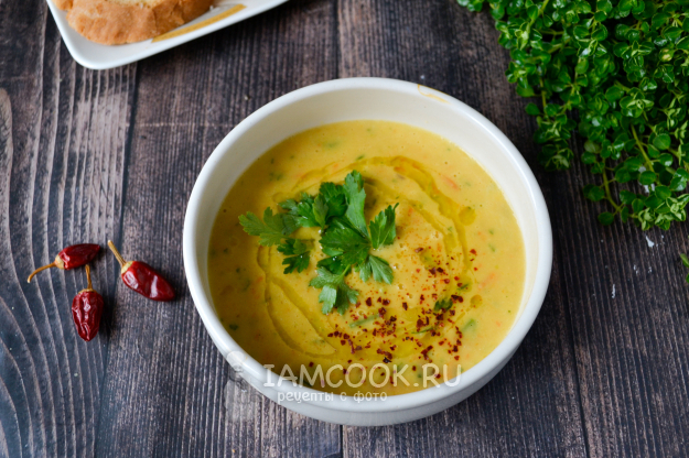 Подавайте биссару горячей, полив оливковым маслом, посыпав красным острым перцем и свежей петрушкой.