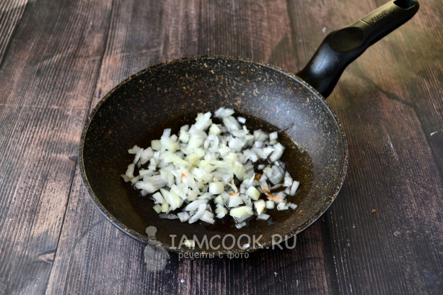 На оливковом масле слегка обжарьте лук.