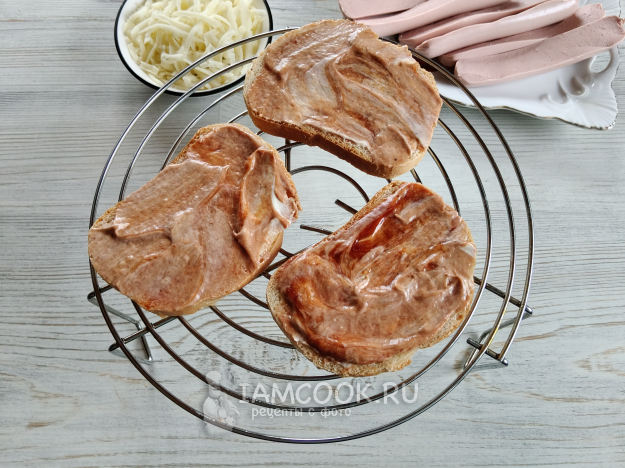 Хлеб намазать соусом.