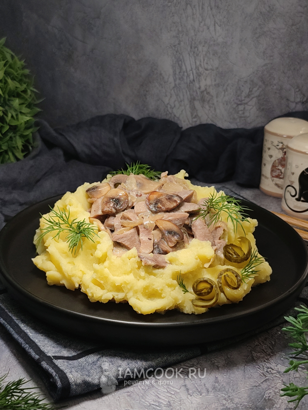А можно преподнести Бефстроганов из языка как полноценное блюдо, сопроводив гарниром из картофельного пюре, как у меня сегодня, или пастой, например.