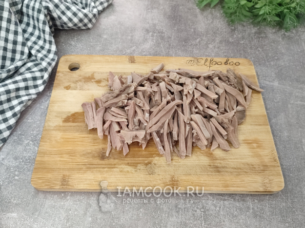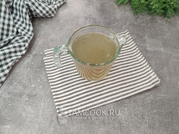Бульон, в котором варился язык, нам еще понадобится, отлейте через сито 350-400 мл в отдельную чашку.