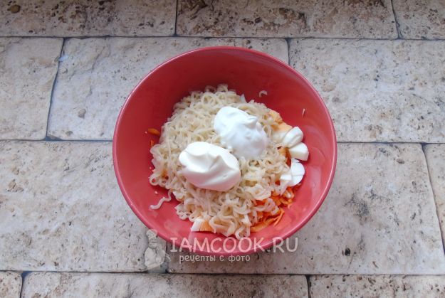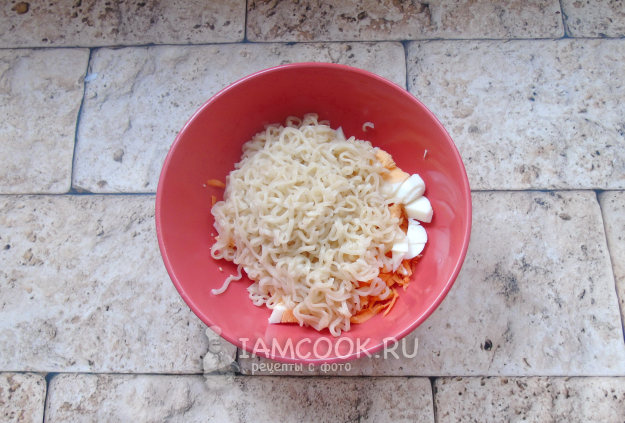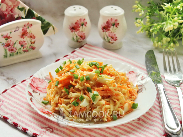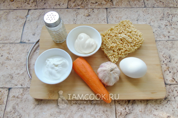 Все ингредиенты для салата с лапшой быстрого приготовления и морковью - перед вами, на фото.