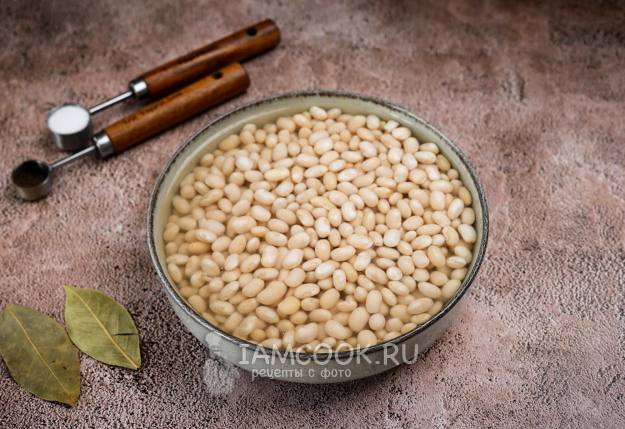 Фасоль выложите в удобную миску и залейте водой минимум на 6 часов. Через 6 часов фасоль набухнет - воду слейте.