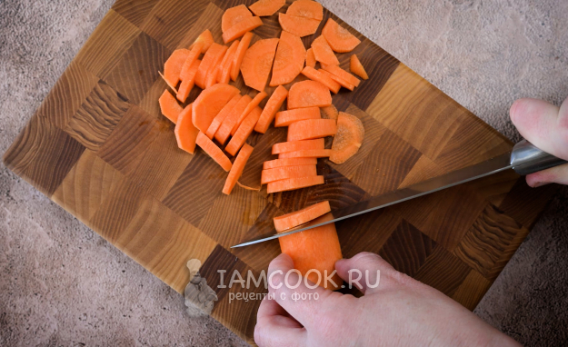 Морковь нарежьте полукружиями или тонкими кружочками.