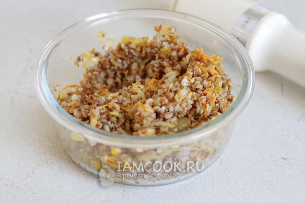 На растительном масле (3 ст. л.) обжарьте лук с морковью до мягкости. Остудите.