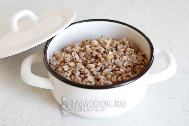 Влейте воду. Дождитесь, когда закипит вода, убавьте огонь. Слегка посолите. Варите гречку под крышкой на медленном огне 15-20 минут. Гречку слегка остудите.