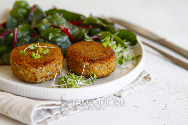 Корочка у постных гречневых котлет получится румяной, а внутри котлеты будут сочными.