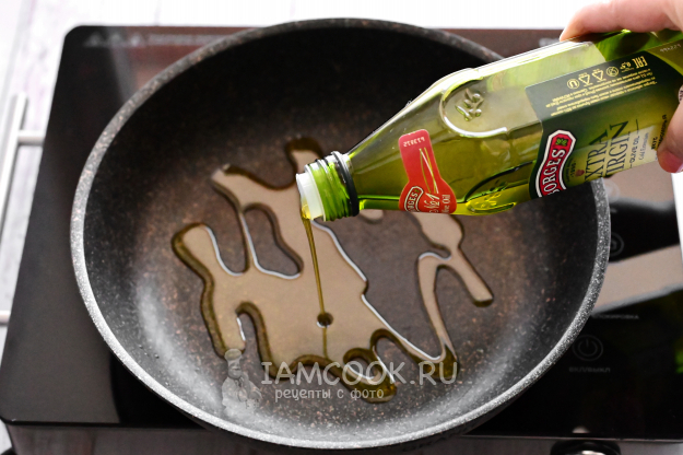 Разогрейте сковородку на максимальном огне с оливковым маслом.