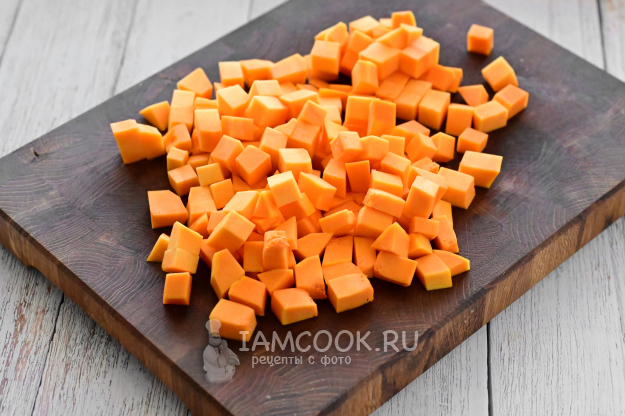 Тыкву очистите и нарежьте кубикам примерно 1х1 или 2х2 сантиметра.