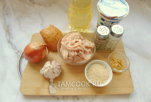 Соберите ингредиенты для приготовления куриных котлет с горчицей.