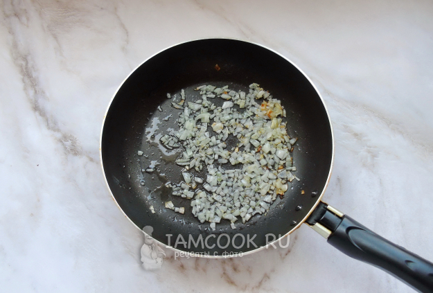 Жарьте лук до легкого золотистого цвета.