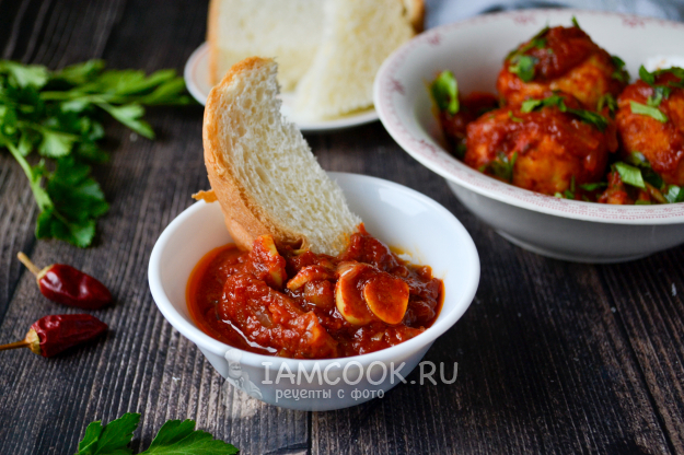 Свежий белый хлеб немного нейтрализует остроту и пряность томатного соуса.