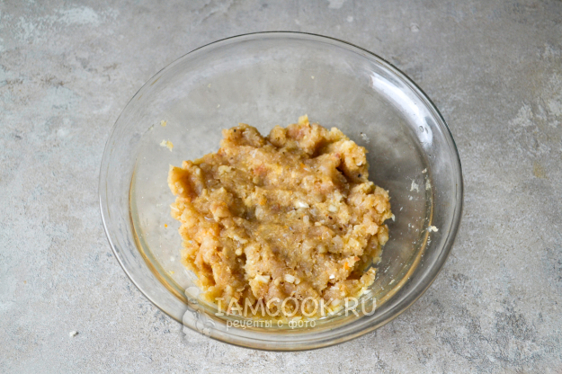 Тщательно перемешайте и слегка отбейте фарш.