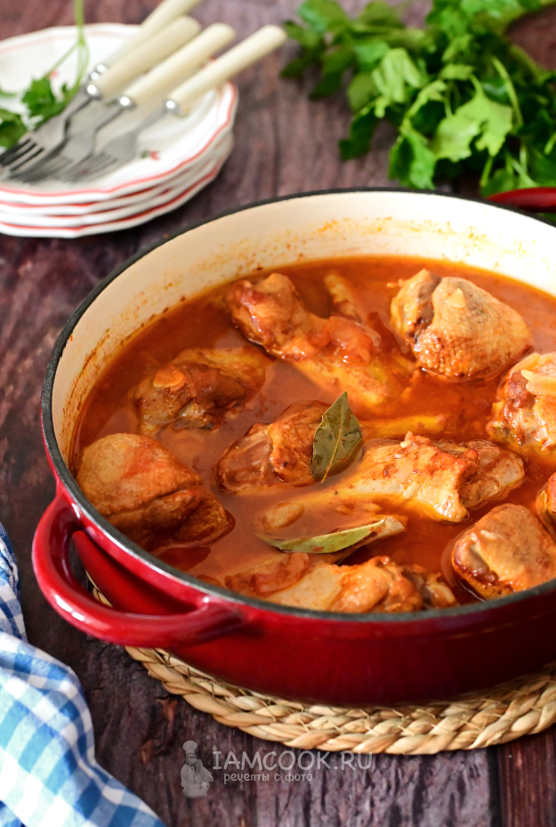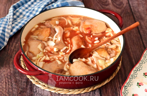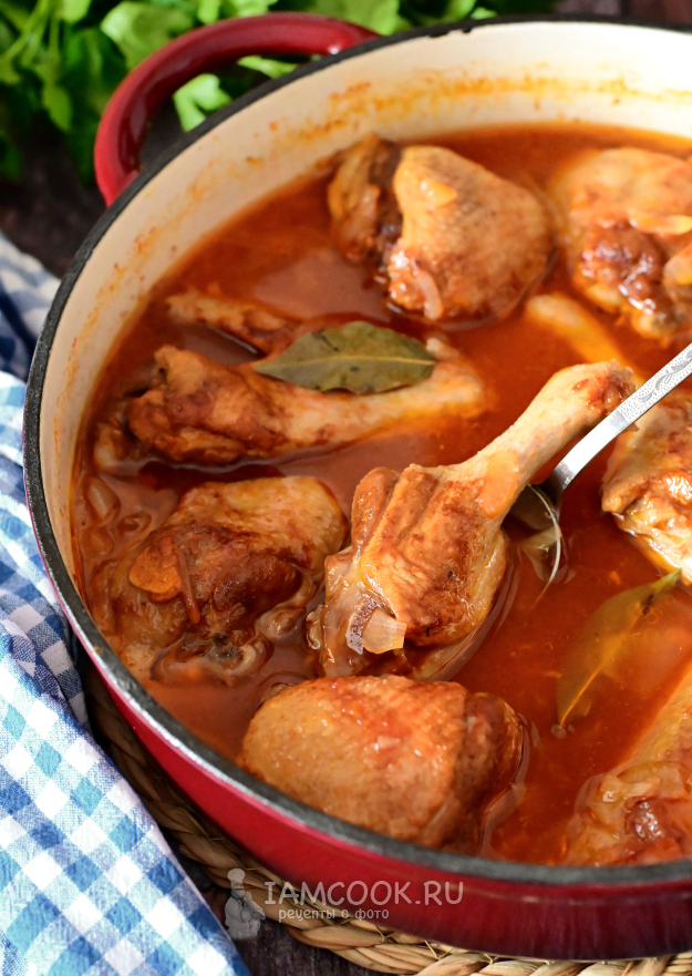 Периодически заглядывайте и проверяйте кусочки утки на мягкость. Как только вас устроит мягкость мяса, тушеная утка в томатному соусе готова!