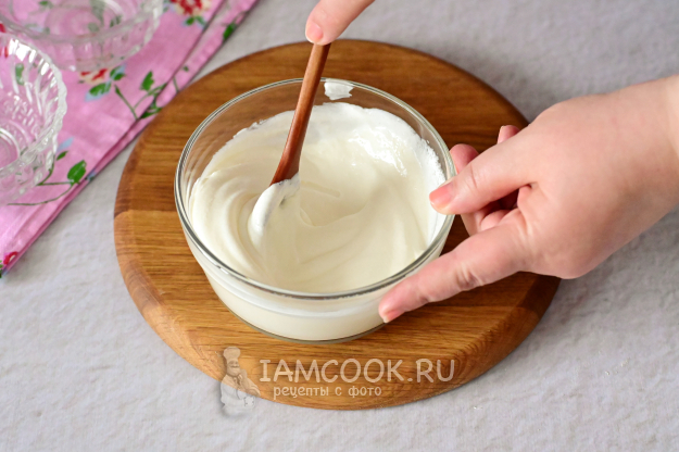 Для этого возьмите сметану (не менее 20% жирности), добавьте в нее сахар и перемешайте до полного его растворения. Можно добавить в крем немного ванилина или лимонной цедры.