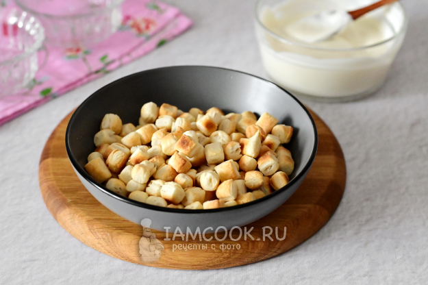 При выпечке в духовке квадратики поднимутся и превратятся в малюсенькие пышечки. Готовые пышечки пересыпьте в тарелку и остудите. Если какие-то из них слиплись, то разделите их аккуратно руками.