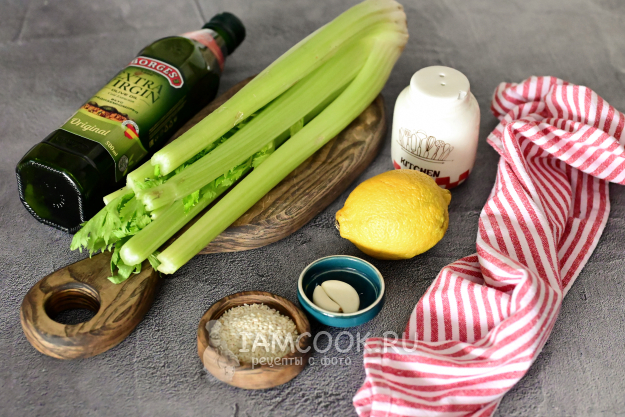 Соберите необходимые продукты для приготовления соуса из стеблевого сельдерея.