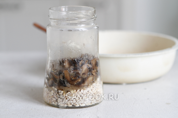 Добавьте в банку грибы.