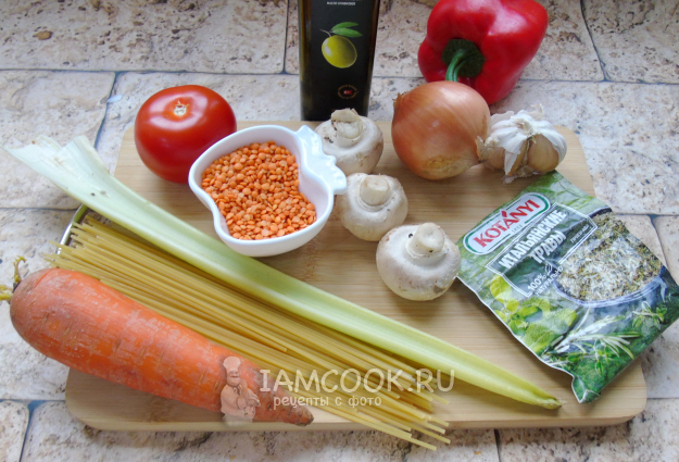 Соберите ингредиенты для приготовления вегетарианского соуса болоньезе.