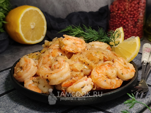 При подаче по желанию можно сбрызнуть креветки соком лимона).