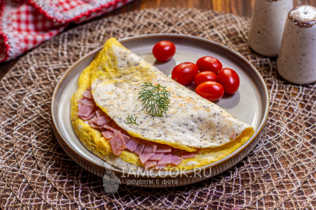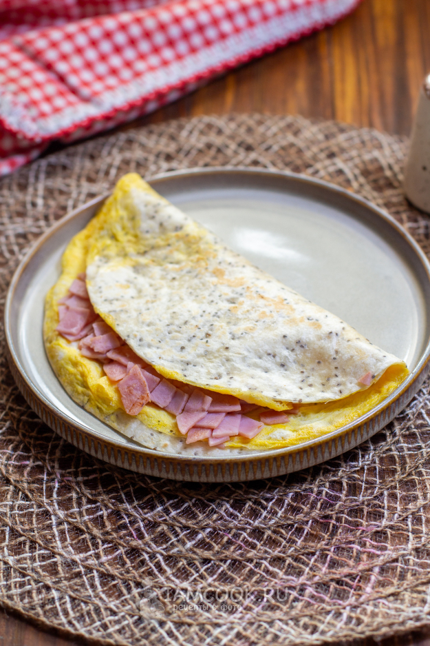 Вкусный и быстрый завтрак из тортильи с омлетом и ветчиной готов! Подавайте сразу к столу!