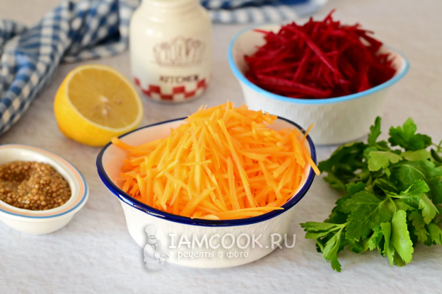 Тыкву и свеклу натрите на крупной терке или нарежьте тонкой соломкой.