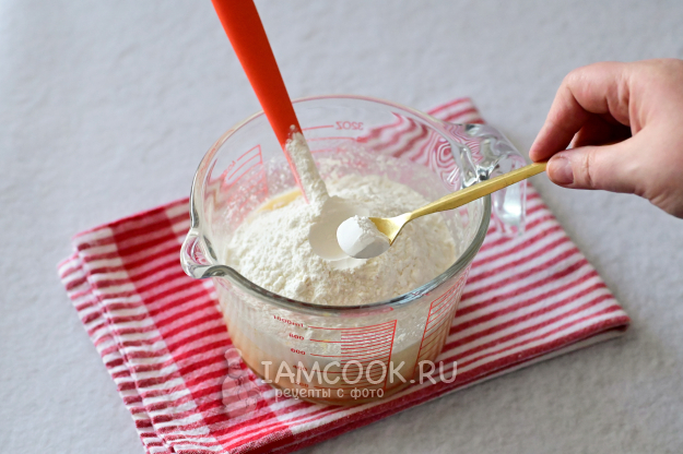 Всыпьте к влажным ингредиентам муку и добавьте разрыхлитель.