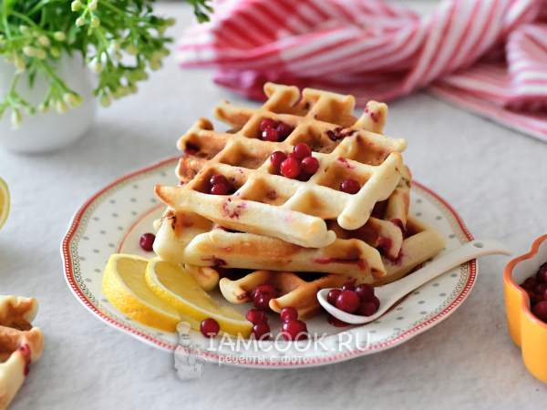 Вафли с ягодной начинкой можно готовить как со свежими, так и с замороженными ягодами. Лучше брать ягоды мелкие, чтобы они более равномерно распределились по тесту. У меня сегодня вафли с брусникой.