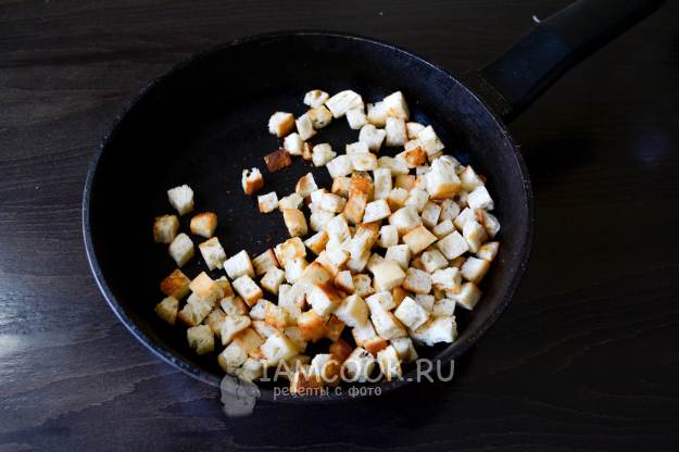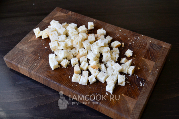Хлеб нарежьте кубиком.