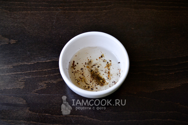 Для заправки салата смешайте в мисочке столовый 6% уксус, щепотку сахара, щепотку соли, черный молотый перец. Добавьте растительное масло и холодную кипяченую воду до нужной вам концентрации кислоты. Перемешайте, чтобы сахар и соль растворились.