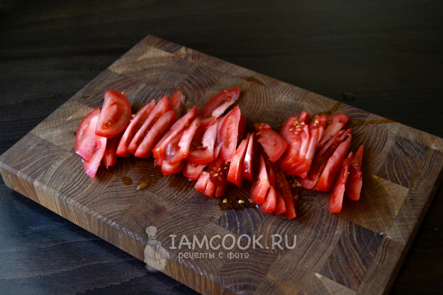 Свежие помидоры нарежьте ломтиками.