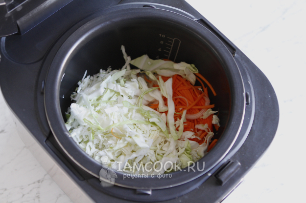 В чашу мультиварки влейте масло и добавьте все овощи. Слегка посолите.