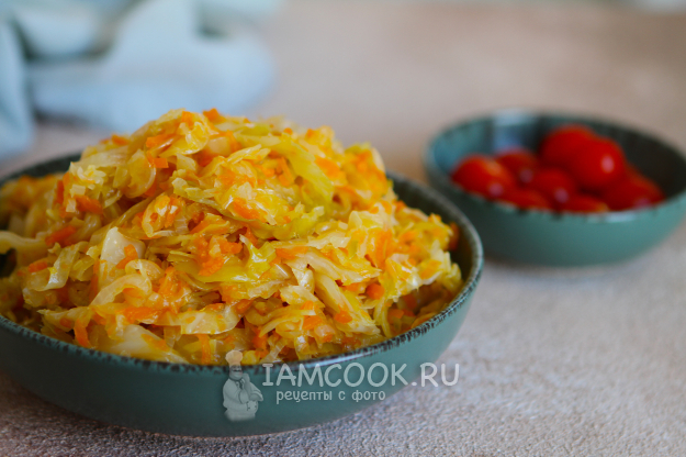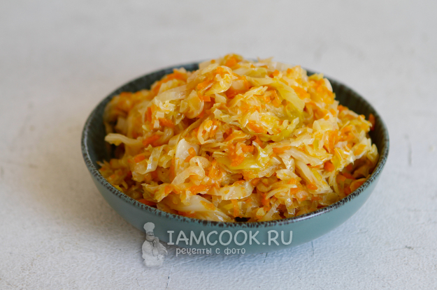 По окончании программы мультиварка издаст звуковой сигнал. Откройте крышку и попробуйте капусту на вкус. При необходимости добавьте соль. Ну вот и все, наша тушеная капуста с тыквой в мультиварке готова.