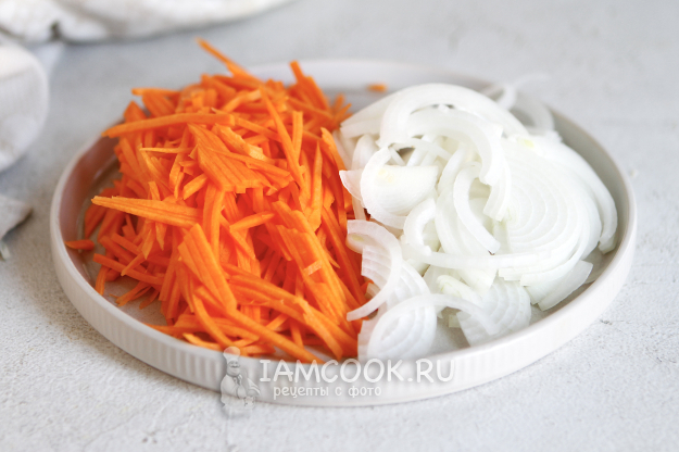 Лук нарежьте перьями, а тыкву - тонкой соломкой. Если у вас на кухне есть терка для корейской моркови, рекомендую воспользоваться ей.
