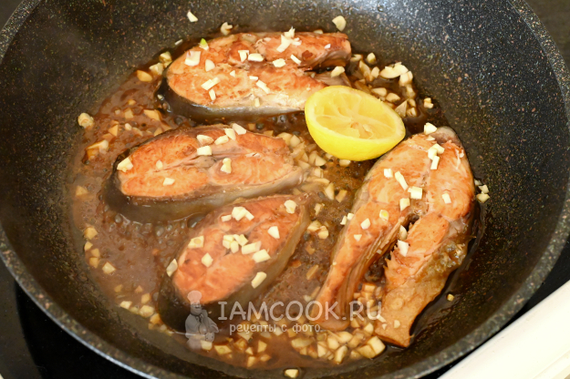 Ещё 15-20 секунд на сковороде, чтобы рыба напиталась вкусом, и можно снимать сковороду с плиты, блюдо готово.