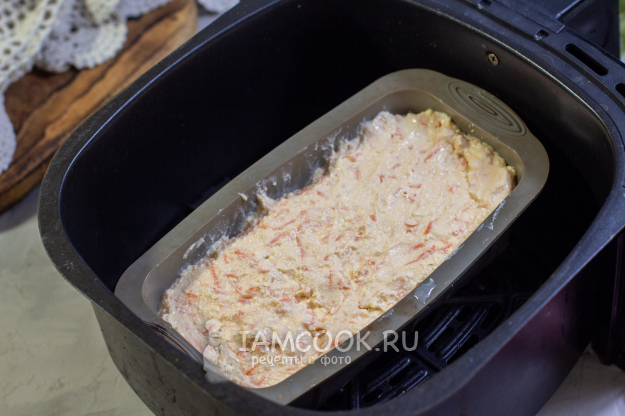 Полученную массу выложите в подходящую форму и установите ее в чашу аэрогриля. Готовьте творожно-морковную запеканку в аэрогриле при температуре 160-170 градусов 25-35 минут. Точное время приготовления и температура будут зависеть от особенностей работы вашего аэрогриля.