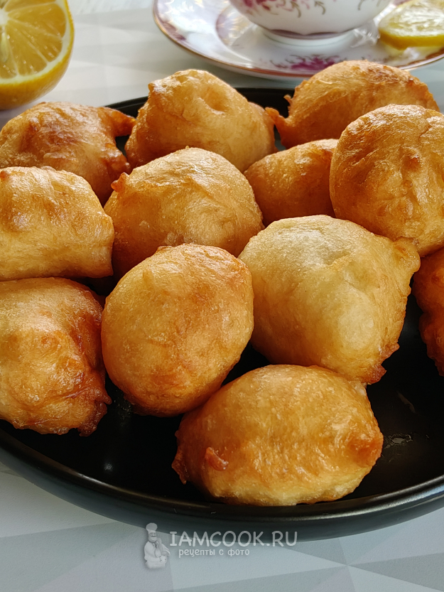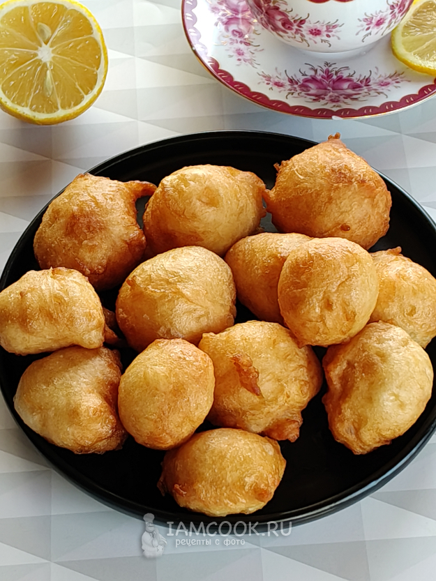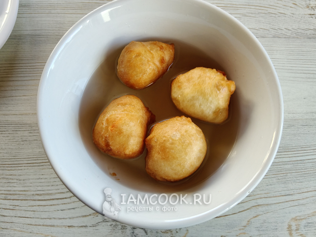Погрузить теплые лукумадес в сироп, буквально на пару секунд.