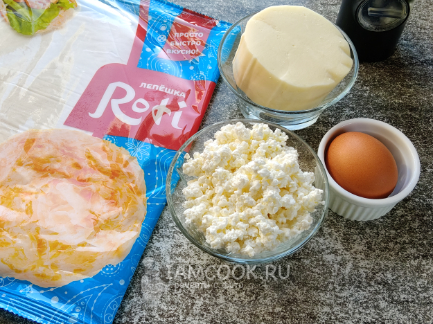 Чтобы приготовить хачапури из лепешки роти с творогом, я взяла такие ингредиенты.