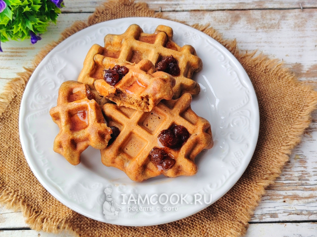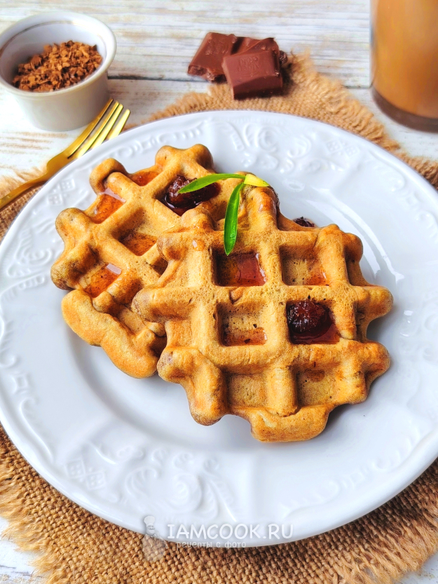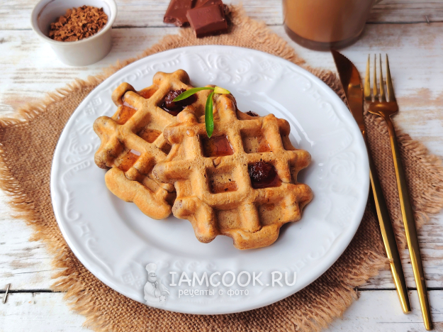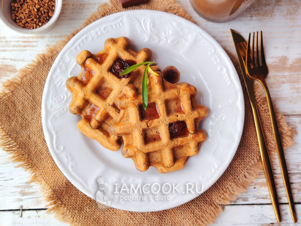 Выпекать кофейные вафли в вафельнице 4-5 минут. Снять с панели лопаткой.