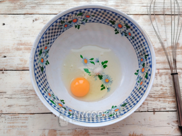 В глубокую миску вбить яйцо, добавить щепотку соли.