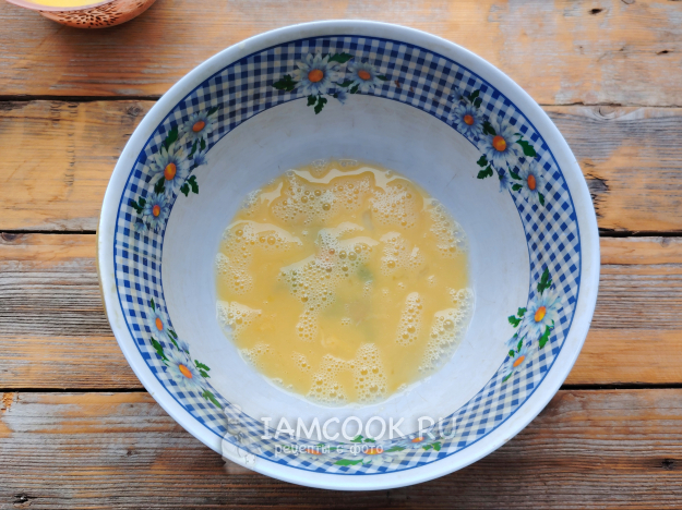 Яйцо растереть с сахаром до однородности.