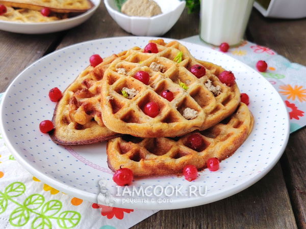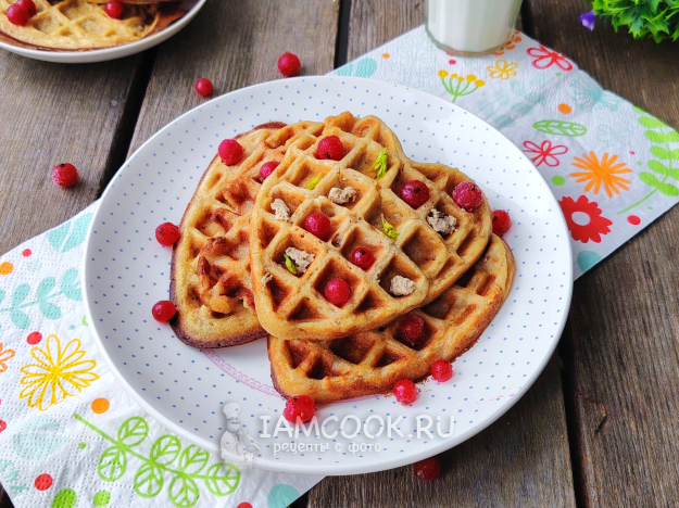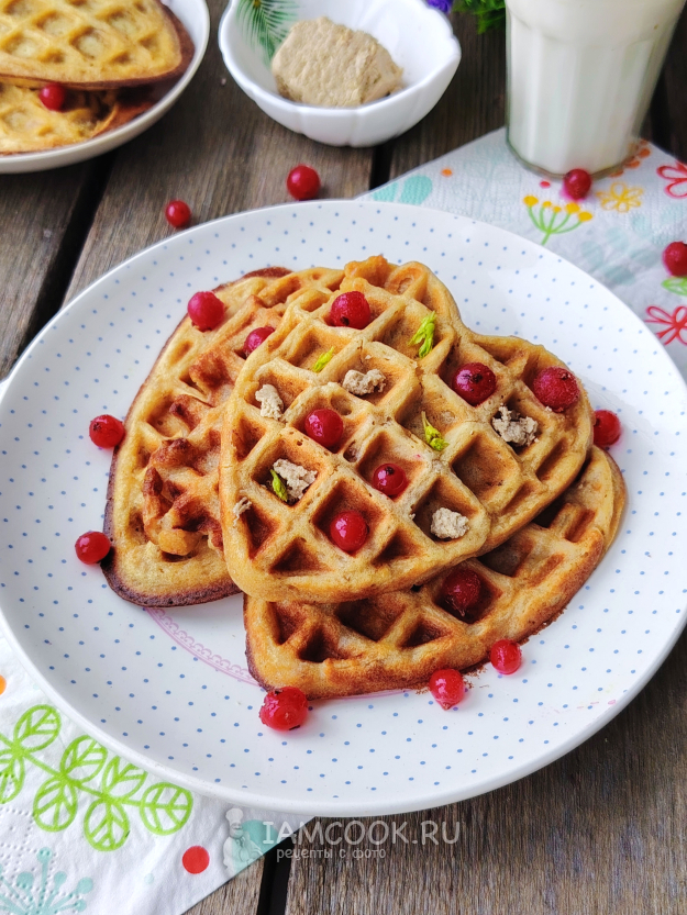 Подать вафли к столу с вареньем, сгущенным молоком или сметаной. Приятного аппетита!