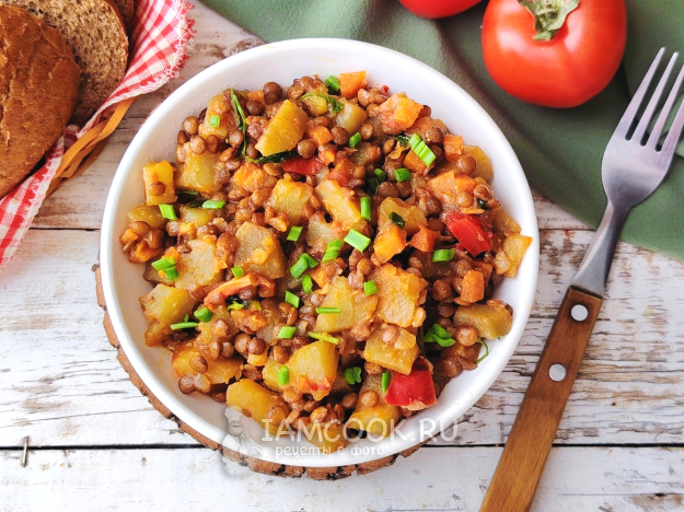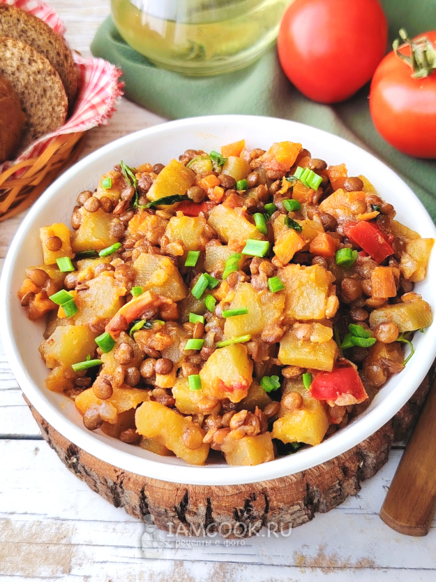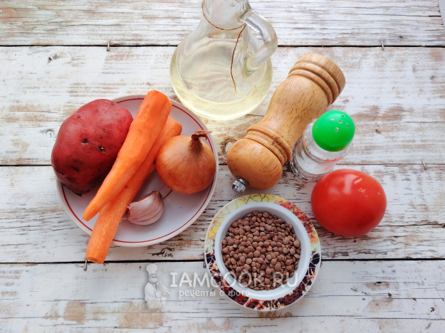 Собрать по списку продукты для приготовления чечевицы с картошкой.