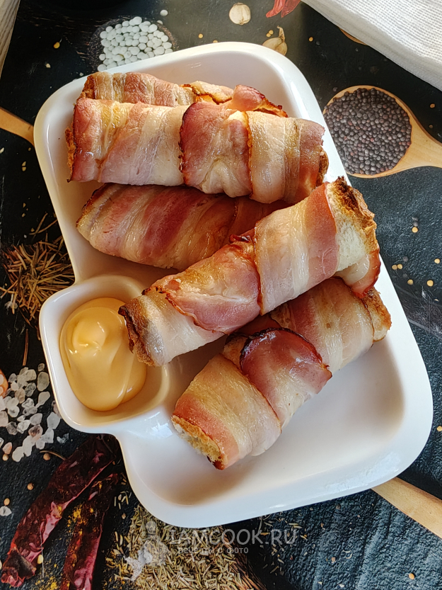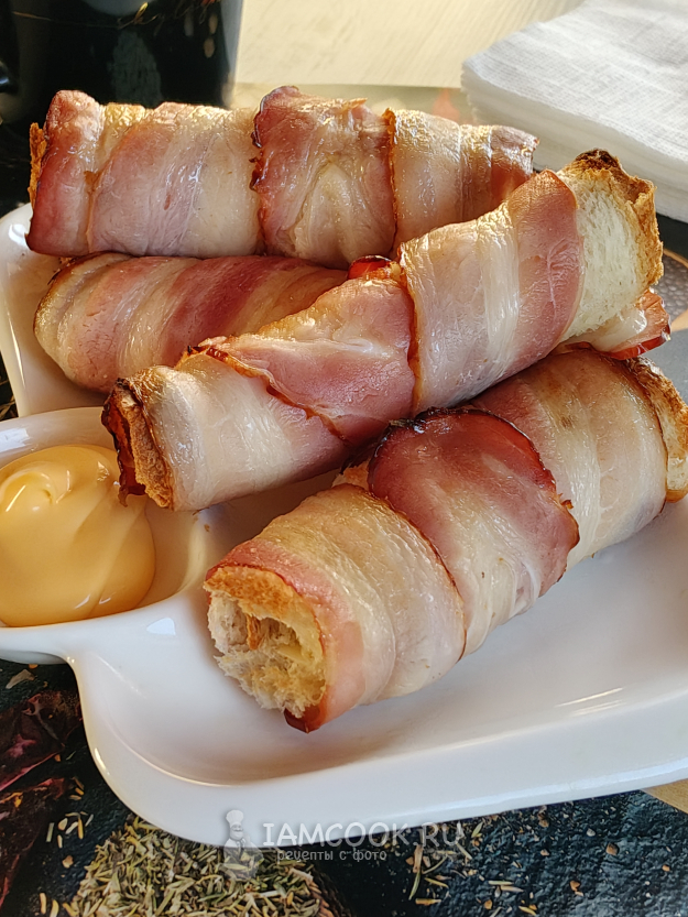 Рулетики из хлеба и бекона готовы.