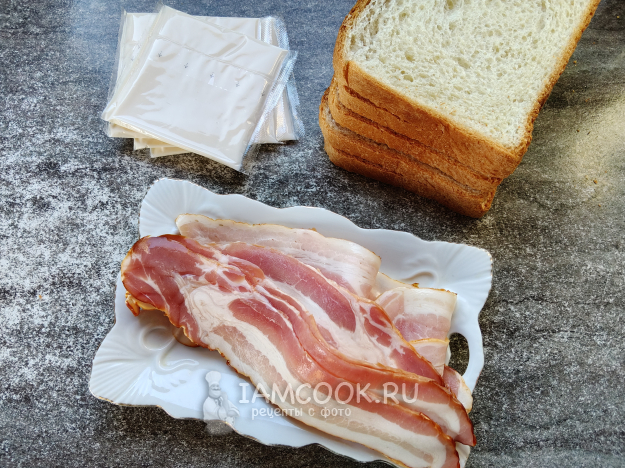 Чтобы приготовить рулетики из хлеба и бекона, лучше взять большой тостовый хлеб.