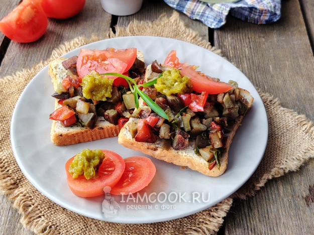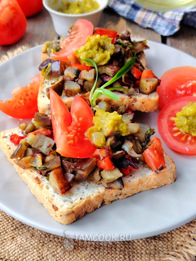 Выложить на хлеб овощи, сверху - дольки томата и ложечку пасты из болгарского перца. Подать постные тосты с овощами к столу. Приятного аппетита!