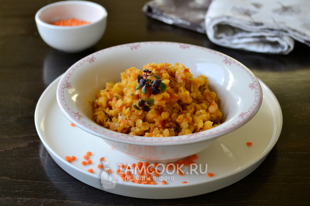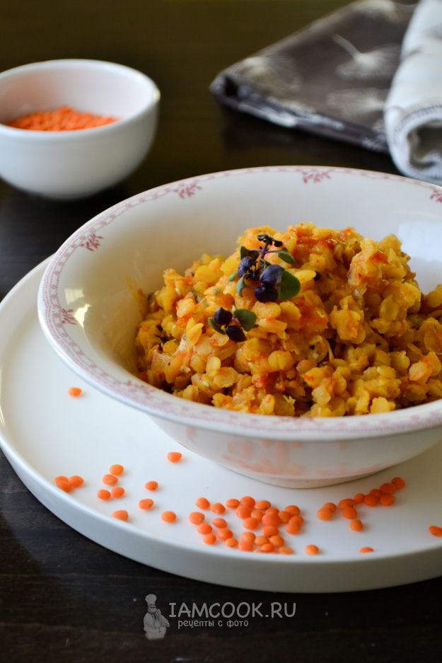 Отличный гарнир или самостоятельное блюдо. Подавайте чечевицу горячей, по желанию посыпьте свежей зеленью, например, микро зеленью базилика.